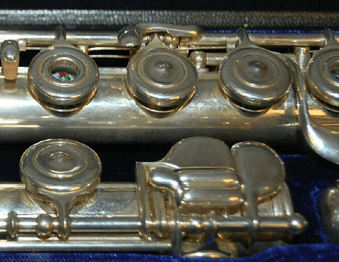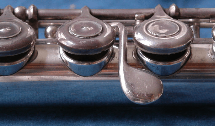 Today I saw an offering on eBay for a 1998 Haynes Flute that appeared to have a professional, handcrafted design. Something was odd about it. Upon closer inspection I noticed that it does not have French pointed key arms. Instead it has Y arms like a commercial model. But it looks strangely French. I realized it employed a design that Louis Léon Joseph Lebret (b. 1862) used – “raised nipple” style key cups. I’ve only seen a few other historical flute makers make use of this key cup design. I wondered if 1) Haynes was trying to promote / experiment with reviving the design, 2) custom designed by request or 3) give the instrument expensive look while keeping the cost at commercial model level. I must say it does give the instrument a uniquely elegant touch.